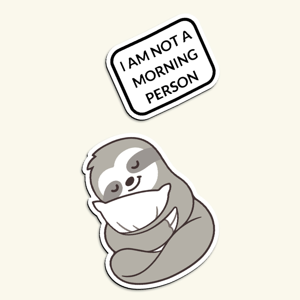 برچسب: morning person, استیکر بامزه, استیکر خنده دار, استیکر فانتزی, تنبل